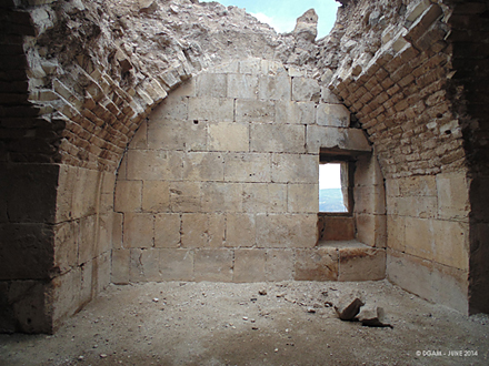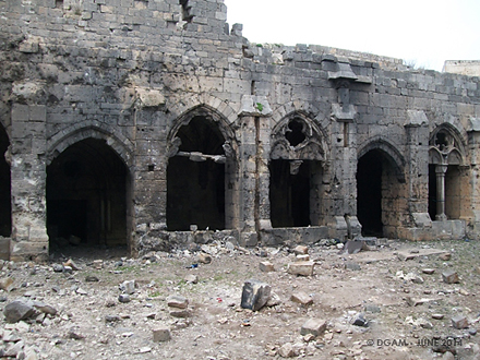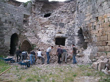The Directorate General of Antiquities and Museums (DGAM) gave account of consolidation works at the Crac des Chevaliers and other sites during this year. They comprised structural measures at the so-called "Hall of the Knights", cleaning of its façades, and the re-alignment and re-positioning of stones there. However, a comprehensive restoration effort would be necessary to safeguard this UNESCO World Heritage Site. Further consolidation works were carried out at the citadel of Damascus, the citadels of Maḥālba, and the citadel of al-Ḫawābī.
